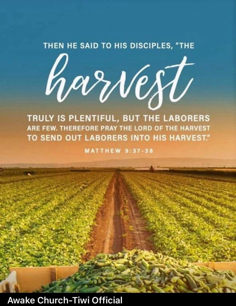 “Then he said to his disciples, “The harvest is plentiful, but the laborers are few; therefore ask the Lord of the harvest to send out laborers into his harvest.”