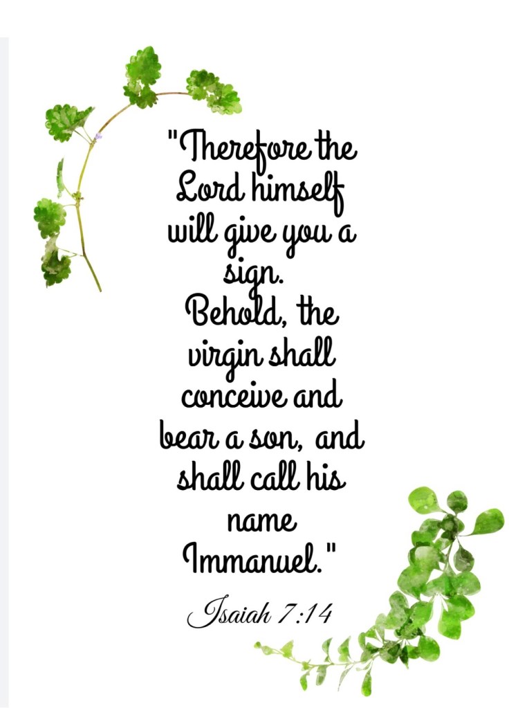 “Therefore the Lord himself will give you a sign. Look, the young woman is with child and shall bear a son and shall name him Immanuel.”