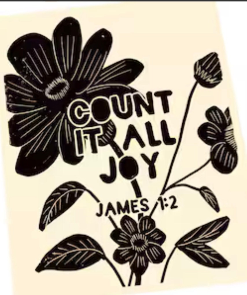 “Consider it pure joy, my brothers and sisters, whenever you face trials of many kinds, because you know that the testing of your faith produces perseverance. Let perseverance finish its work so that you may be mature and complete, not lacking anything.”