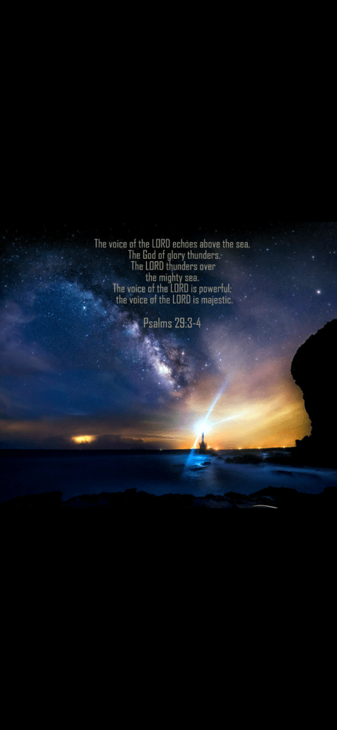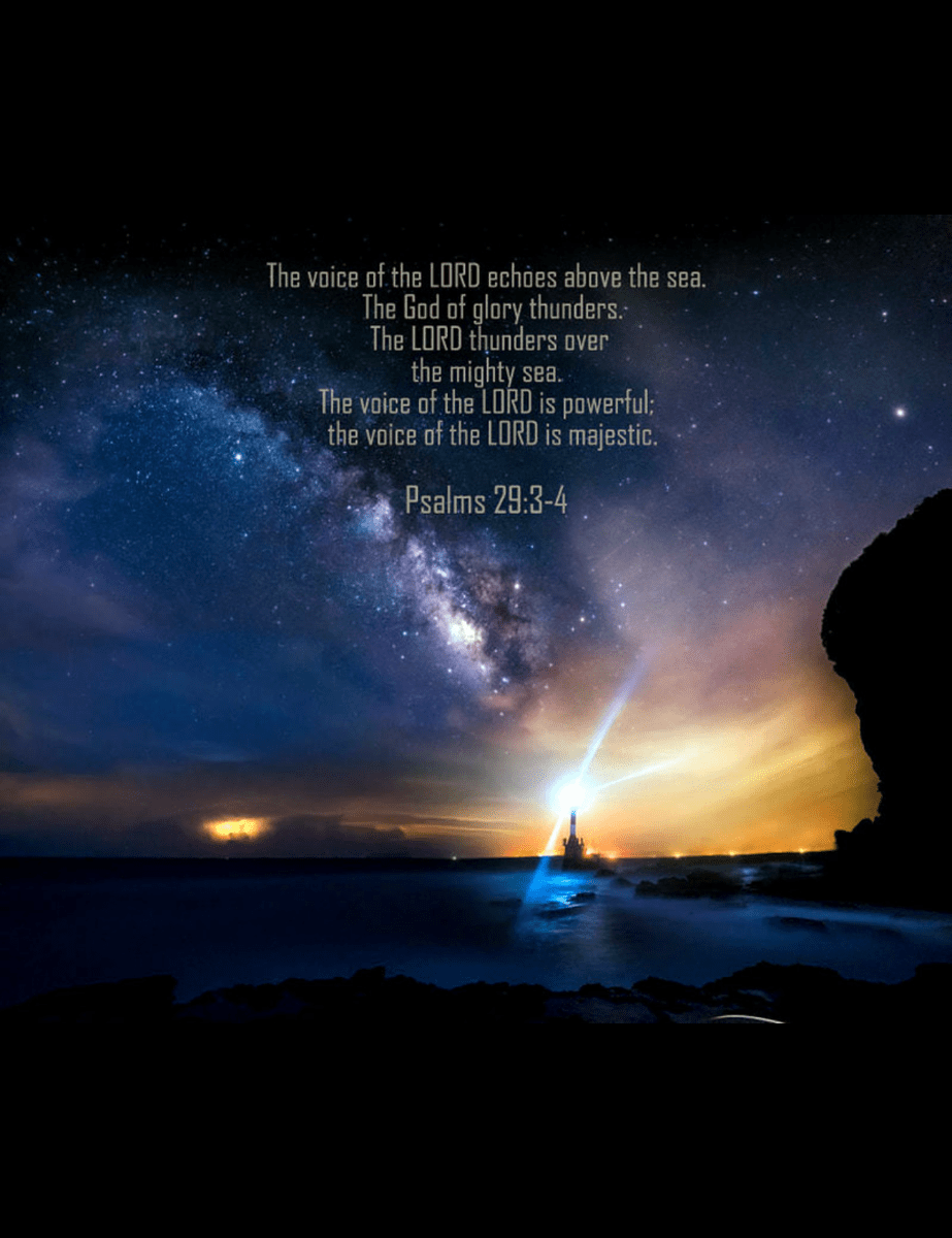“The voice of the Lord is over the waters; the God of glory thunders, the Lord thunders over the mighty waters. The voice of the Lord is powerful; the voice of the Lord is majestic.”