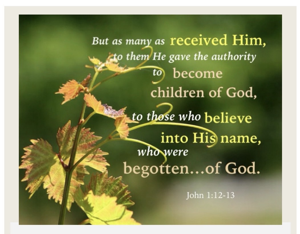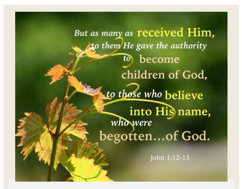 “Yet to all who did receive him, to those who believed in his name, he gave the right to become children of God— children born not of natural descent, nor of human decision or a husband’s will, but born of God.”